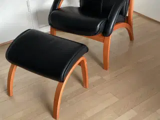 2 læder stole med bøge stel + 1 fodskammel
