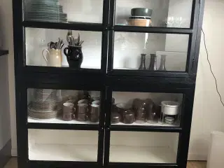 Charmerende lille udstillingsskab Glaslåge og hylder – skal nok have en klat maling 77 høj – 19 dyb og 24 bred Sender ikke Skab vitrine småmøbel glas træ opbevaring montre