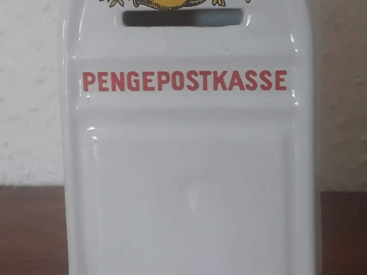 Stemplet "Pereiras, Made in Portugal" bagpå. Med krakeleringer, men ingen skår. 12 x 7 x 5 cm. Ca samme str som de almindelige små røde postkasser/sparebøsser. Sender gerne mod betaling af fragt.