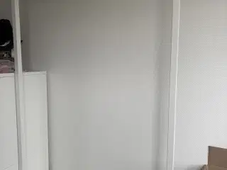 Tøjstativ på hjul med stofoverdækning - lukkes med lynlåse. Let at flytte og fylder ikke meget. Bredde: 76cm, Højde 155cm og dybde 48cm. Der er en stålhylde foroven og forneden.