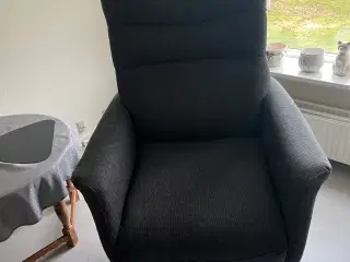 1 stk Farstrup Otium lænestol med lysegrå stof og vippefunktion højde 113 cm bredde 67 cm sædehøjde 48 cm