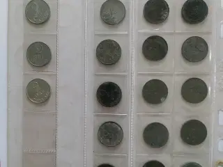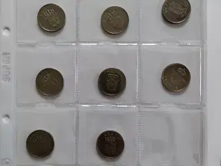 6 stk. 1 kroner fra Christian X og Frederik IX vægt 6,5 gram i aluminimumsbronze. 1925-1926-1947-1947-1948-1953 pålydende værdi 6 kroner
