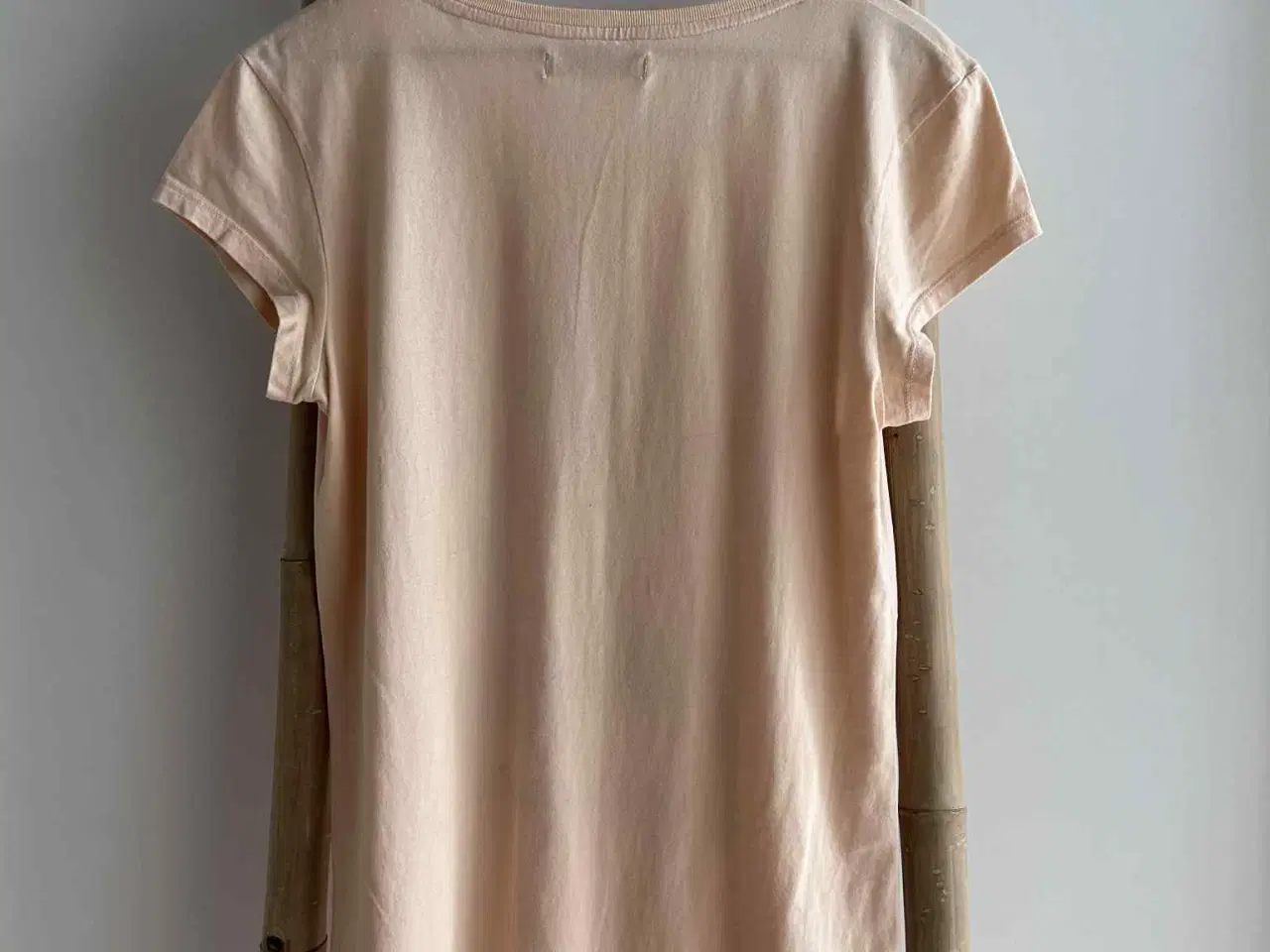 GABBA t-shirt Str. L. Farve: Pudder/ Abrikos / Fersken. Lang, blød t-shirt med print og små 'pyntesten' på fronten samt korte ærmer. Materiale: 100% Bomuld. Mål: Fra skulder til bund: ca. 75 cm. Fra skulder til skulder: ca. 43 cm. Fra side til side, under armene: ca. 43 cm. Fra ikke-ryger hjem. T-shirten er NY, aldrig brugt. Nypris: 199,95 kr.