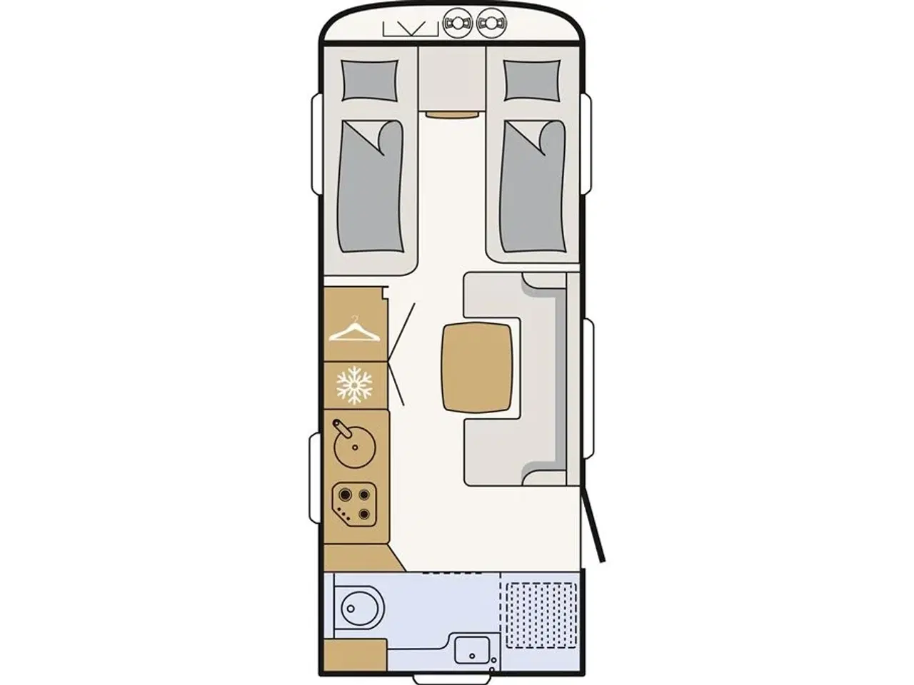 Nomad 520 ELT Campingvogn med 2 enkeltsenge i front med mulighed for at lave en dobbeltseng. Rundsiddegruppe midt i vognen. Køkken i venstre side af vognen væk fra fortelt siden med 3 gasblus, brede skuffer, et udtræksskab, samt et køleskab på 142 ltr. Toilet på tværs af bagenden af campingvognen med bruser i højre side og toilet i venstre side. Der er monteret solceller og batteri til egenforsyning og truma duocontrol. Der medfølger ikke nogen fortelt så hør os om mulighederne. Prisen er inkl. leveringsomkostninger og nr. plade. Egenvægt: 1445 Totalvægt: 1800 Stel nr.: WDT15EMANP0000115 Reg. 1. gang: 13-03-2023 Bredde i cm.: 250 Garanti: Købeloven Vandtank ltr.: 45 ltr. Beskrivelse: markise længde 4,50 meter A-mål cm.: 1032 Senge mål: 200 x 85 & 196 x 85 cm Stabilisator,Alufælge,Fluenetsdør,Batteri,Batterilader,Solcelle anlæg,Fladskærmsholder,Toiletrum,Kassettetoilet,Brusekabine,Vindue i toiletrum,Gulvvarme,El. Gulvvarme,Varmtvand,Fast vandtank,Spildevandstank,Aut. Gasomskifter,Kassettegardiner,Enkeltsenge,Enk. Senge lameludt.,Hæve/sænkebord,Rundsiddegruppe,Stor tagluge,Serviceklap,Køleskab,Truma Combi Varme m. El
