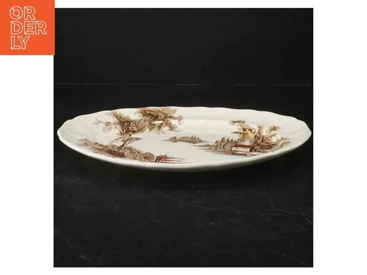 Klik på 'Se annoncen hos forhandleren' for at se varen i vores webshop Et vintage serveringsfad med et detaljeret landskabsdesign, der viser en bygning ved en sø omgivet af skov og bjerge. Fadet er lavet af stentøj og har bløde kanter. Fadet er ideelt til servering af forskellige retter og vil tilføje et klassisk touch til borddækningen. Tags: serveringsfad, vintage, landskab, klassisk Brand: Johnson Bros Farve: hvid Stand: 60 - Varen har mindre spor fra almindelig brug (Se billeder) Vi sender til hele landet for 49 kr. Leveringstiden er 1-3 hverdage. Du kan også gratis hente den på vores lager på Industrivej 10 i Slangerup. Er du i tvivl om varen stadig er til salg? Klik på knappen "Se annoncen hos forhandleren" for at se den i vores webshop. Kan du se den der, er den stadig til salg Orderly er en ny måde at købe brugt på. Vi har alle vores sælgeres ting på vores centrale lager. Derfor kan du være helt sikker på at få dine ting - og du kan samle flere ting på tværs af sælgere og kun betale én gang fragt.
