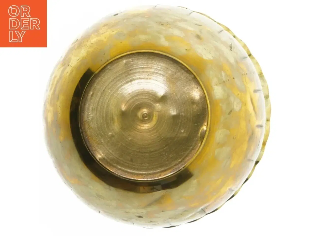 Klik på 'Se annoncen hos forhandleren' for at se varen i vores webshop En dekorativ krukke lavet af messing, ideel til brug som både vase og generel dekoration. Den har et bølget kantdesign og viser tydelige patinalignende træk, hvilket tilføjer karakter og charme. Krukken måler Ø. 20 cm i diameter og 19 cm i højden, velegnet til både indendørs og udendørs brug. Brand: Ukendt Farve: guld Stand: 40 - Varen er synligt af ældre dato (Se billeder) Vi sender til hele landet for 49 kr. Leveringstiden er 1-3 hverdage. Du kan også gratis hente den på vores lager på Industrivej 10 i Slangerup. Er du i tvivl om varen stadig er til salg? Klik på knappen "Se annoncen hos forhandleren" for at se den i vores webshop. Kan du se den der, er den stadig til salg Orderly er en ny måde at købe brugt på. Vi har alle vores sælgeres ting på vores centrale lager. Derfor kan du være helt sikker på at få dine ting - og du kan samle flere ting på tværs af sælgere og kun betale én gang fragt.