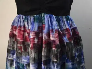 Smuk og enkel top med lynlås fortil. Stropperne er regulerbare. Stoffet er dobbelt omkring bryst/rygstykket Materiale: 97% silke, 3% spandex Mål: Brystvidde: 89 cm Længde: 69 cm Længde fra ærmegab og ned: 49 cm Talje: 94 cm Bud fra kr 200 plus porto Afhentning: København, Østerbro