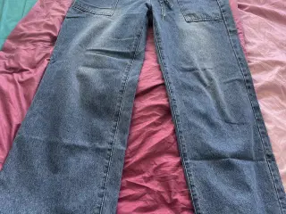 Flared bukser i størrelse S (EU 36). Mærket er Shein, og bukserne er lavet af 85% bomuld, 13 % polyester og 2% elastan. Flotte lyseblå jeans.