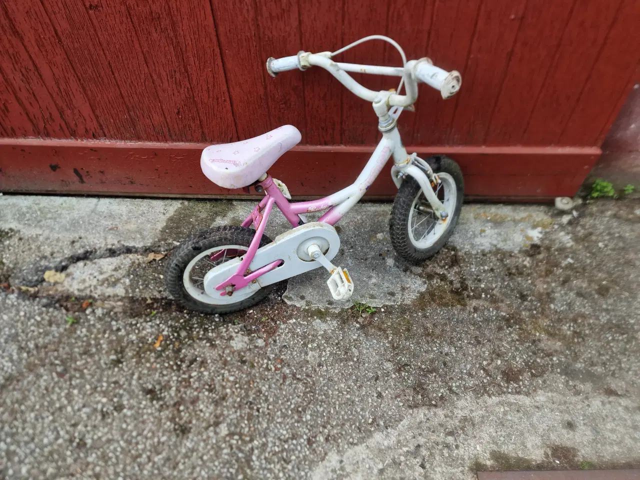 Pigecykel ROCKY PRINCESS med håndbremse foran og fodbremse bagpå stelstørrelse 22cm hjulstørrelse 9tommer passer til en benlængde på fra 40cm til 50cm målt fra lysken til fodballen skal afhentes i 8260 Viby J Jylland absolut fast pris kan ikke forhandles hvhskur