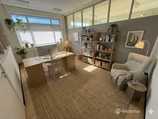 Lej et lyst og funktionelt kontor på 48 m², fordelt på to sammenhængende rum med dør imellem. Lejemålet er indrettet med trægulve og lyse vægge, hvilket giver et behageligt arbejdsmiljø. Kontoret er en del af kontorfællesskabet VÆKSTVÆRKET på Glasværkets 2. sal, hvor der er nem adgang via elevator. Her får du ikke kun dit eget kontor, men også adgang til inspirerende fællesfaciliteter: - Indbydende storrum til fælles brug - Mødelokale - Stort køkken og spiseområde - Toiletter Kontorfællesskabet deles i dag med tre andre virksomheder, hvilket skaber et dynamisk og kreativt miljø. Der er **gratis parkering** ved ejendommen, og fibernet er naturligvis tilgængeligt.