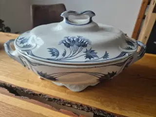 Smukt bordfad i rustfrit stål samt to fyrfadsstager, ligeledes i rustfrit stål. Fremstår som nyt.