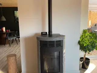 demo ovn sælges har kun været i udstilling og max brændt 2 poser piller der medfølger trådløs styring mærke salus, der kan evt til købes 80 mm røgrør og gulvplade til ovnen dette kan evt. handles i prisen