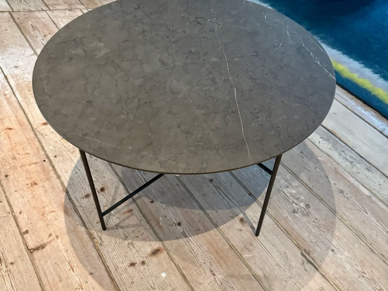 Sen Sofabord i marmor fra Italienske Depadova designet af Kensaku Oshiro. Marmor er i smuk varm grå brun farve. Stellet er massivt pulverlakeret antracit grå stål. Bordet måler 67cm i Ø og er 41cm i højden. I smuk stand. Nypris i dag 13.000kr.
