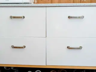 Rummelig købmandsdisk med 15 skuffer (9 store+ 6 små) Bredde 133 cm Dybde 42 cm Højde 80 cm Ubehandlet fyrtræ. Synlige brugsspor, men robust og stabil. Fra ikke-ryger hjem