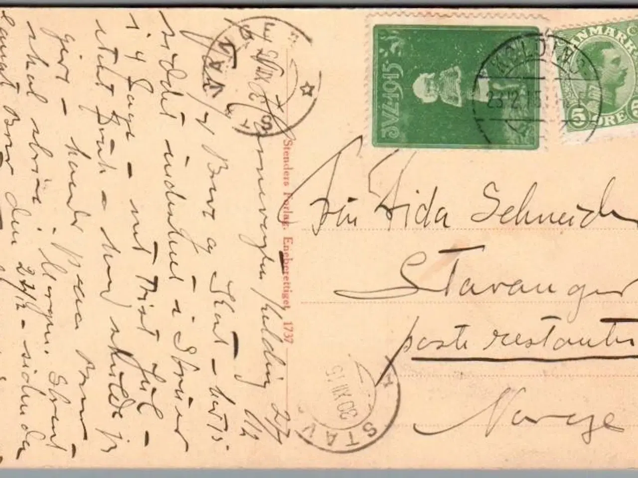 Julemærke 1915 på Postkort til Norge