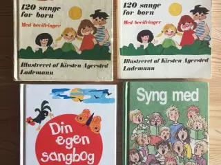 Alt er NEDSAT: 1. Lystige viser nr. 1, 2, 3, 4, 5, 6, 7, 8 og 9, hardback, af Else Larsen og Bo Bramsen m.fl., Politikens Forlag. Bøgerne er yderst velholdte. Pris 50 kr. pr. stk. 2. Politikens Visebog, Lystige Viser, Bind I, II, III, IV og V, Politikens Forlag, hardback, af Bo Bramsen og Else Larsen, nodetegner Aage Nielsen, vignetter og omslag af Laus Lauesen. Bøgerne er pæne og velholdte. Pris 65 kr. pr. stk. 3. Lystige viser for børn nr. 1, 2, 3, 4 og 5 med tekster, noder og becifringer, Politikens Forlag, 1964, 1981 og 1979, hardback, af Else Larsen og Bo Bramsen, nodetegner Aage Nielsen, vignetter og omslag af Laus Lauesen. Bøgerne er pæne og velholdte. Pris 50 kr. pr. stk. 4. Lystige sanglege for børn med tekster, noder og becifringer, samlet og beskrevet af Solveig Gervin-Andersen, Politikens Forlag, 1986, hardback. Bogen er yderst velholdt. Pris 50 kr. 5. Lystige rim og remser for børn, af Erik Kaas Nielsen, illustreret af Christian Sekjær. Politikens Forlag 1984, hardback. (Udsolgt fra forlaget). Bogen er yderst velholdt og fremstår som ny. Pris 65 kr. Sendes gerne.