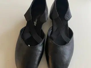 Sorte dansesko fra Diamant i skind af højeste kvalitet. Str. 38 -brugt få gange. Skoene har et fint bånd rundt ved vristen og en trinløst justerbar trykknapspænde til hurtig åbning og lukning på en hælstrop. Med en elegant 5 cm hæl er disse sko perfekte til dans.
