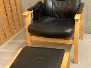 4 skt. stort læderstole fra gamle Bakken gårdens møller i Trige 150kr pr. I alt 800kr.