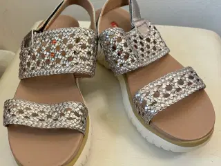 Superflotte og elegante sko i skind med T-rem - aldrig brugt Den indvendige længde er 26,5 cm, hælen er 7 cm høj, det bredeste sted er 8,5 cm Bud fra kr 450 plus porto / nypris kr 1050 Afhentning: København, Østerbro