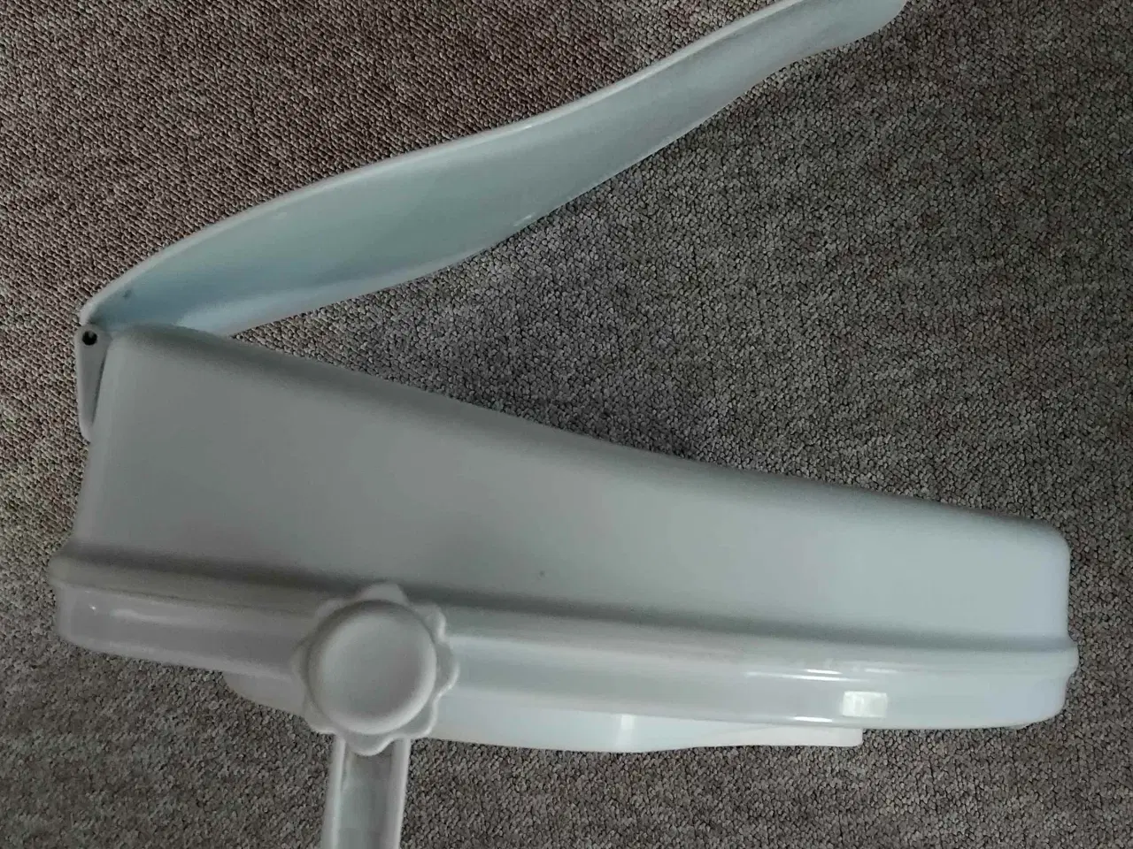 Hævet toiletsæde med låg, lavet i plast, let at montere med to store skruer på hver side, let at fjerne og rengøre, fungerer ikke med et bidettoilet (grund til at sælge det), behageligt, let brugt, alt fungerer som ny, porto er 48kr with GLS, 47 med DAO