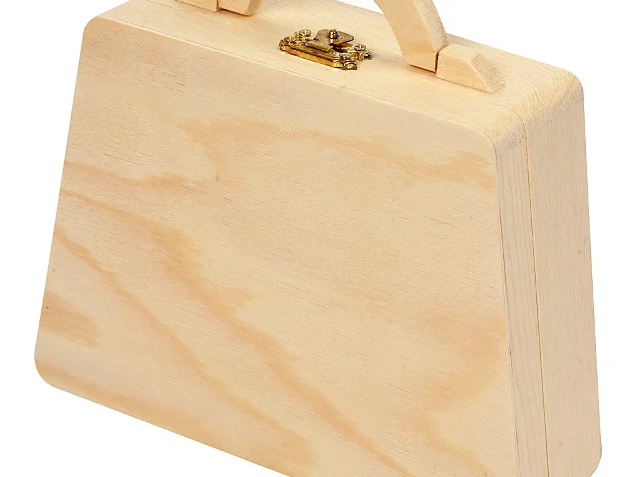 Elegant trætaske med hank og lås, 17,5x13,5 cm