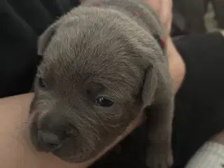DET ER DESVÆRRE, KUN FADEREN TIL HVALPENE, DER HAR STAMTAVLE. MODEREN ER TJEKKET 100% IGENNEM, AF VORES DYRLÆGE, OG HUN ER SUND, OG RASK FRA SNUDE TIL HALE. Staffordshire Bull Terrier hvalp – klar til nyt hjem 24. januar Skøn Staffordshire Bull Terrier hvalp søger et kærligt og ansvarligt hjem. Hvalpen vokser op i hjemlige omgivelser og er vant til daglig håndtering. 🔹 Race: Staffordshire Bull Terrier 🔹 Klar til nyt hjem: 24. januar 🔹 Depositum: 3.000 kr. (fratrækkes den endelige pris) Hvalpen vil være: ✔ Sund og rask ✔ Ormekurbehandlet ✔ Dyrlægetjekket ✔ vaccineret Staffordshire Bull Terrier er kendt for sit kærlige, loyale og glade sind og egner sig godt som familiehund. 📞 Kontakt for mere information