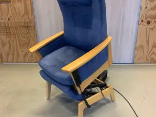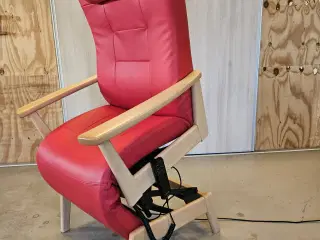 Farstrup Otium Ellænestol med el løft af sæde så du nemt kommer op at stå og manuel ryglæn der kan vippes til hvileposition. Stolen er virkelig pæn og velholdt. Brun læder og stel i lys bøg. Sælges for 6.800,-