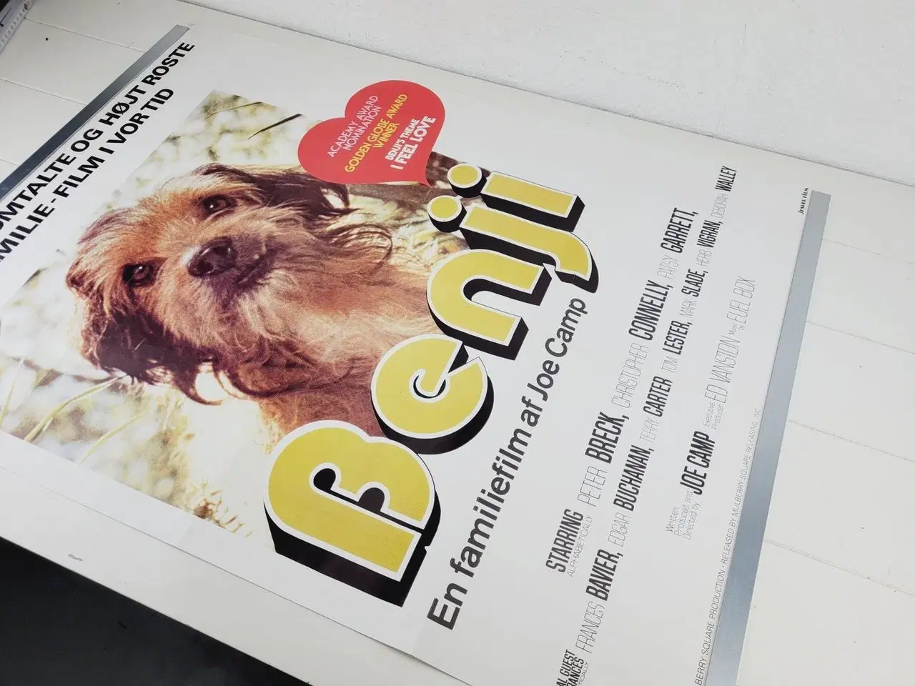 Vintage Plakat, motiv: Film Plakat, b: 85 h: 62, Titel: Benji Denne original vintage filmplakat er et autentisk stykke filmhistorie, der fanger filmens æstetik og stemning på en kunstnerisk måde. Med sin unikke æstetik og kulturelle værdi er den både et samlerobjekt og et nostalgisk vindue tilbage til en svunden tid af filmkunst og kultur. "Benji" er en familiefilm fra 1974, instrueret af Joe Camp. Filmen handler om en kvik hund ved navn Benji, der forsøger at redde to børn fra en kidnapper. Nogle af de mest fremtrædende skuespillere i filmen er: Higgins (hunden, der spiller Benji) - kendt som en af de mest ikoniske hunde i filmhistorien. Peter Breck - kendt for sin rolle som Nick Barkley i TV-serien "The Big Valley". Deborah Walley - kendt for sin rolle som Gidget i "Gidget Goes Hawaiian" og "Gidget Goes to Rome". Patsy Garrett - kendt for sin rolle som Mrs. Livingston i TV-serien "Nanny and the Professor". Som det fremgår af billederne, er filmplakaten generelt er i fin stand, men da det er en original, gammel plakat fra en biograf / videoudlejning, har den været foldet og kan have mindre revner som bør forventes på plakater af denne art. ____________________________________________________ FRAGT: Denne vare KAN SENDES FÅ BILLIG FRAGT VED HURTIG HANDEL. Hvis du i din første besked skriver "JEG VIL KØBE" oplyser navn, adresse samt mail og telefonnummer (til forsendelsen), og få fragten til KUN 29 kr.