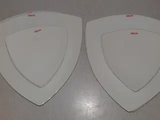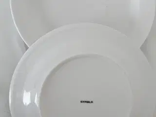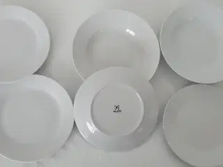 Porcelæn tallerkener 11 stk. Dybtallerkener Mærke: Lambada Danish Design Diameter: 21 cm Farve: Hvid med orange og blå kant Næsten ny Prisen er pr. tallerken Der er også én ekstra tallerken med en lille hak på kanten (Den får du med, hvis du vil)