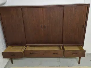 Snedkerlavet fyrretræsskænk med malede låger og skuffefronter