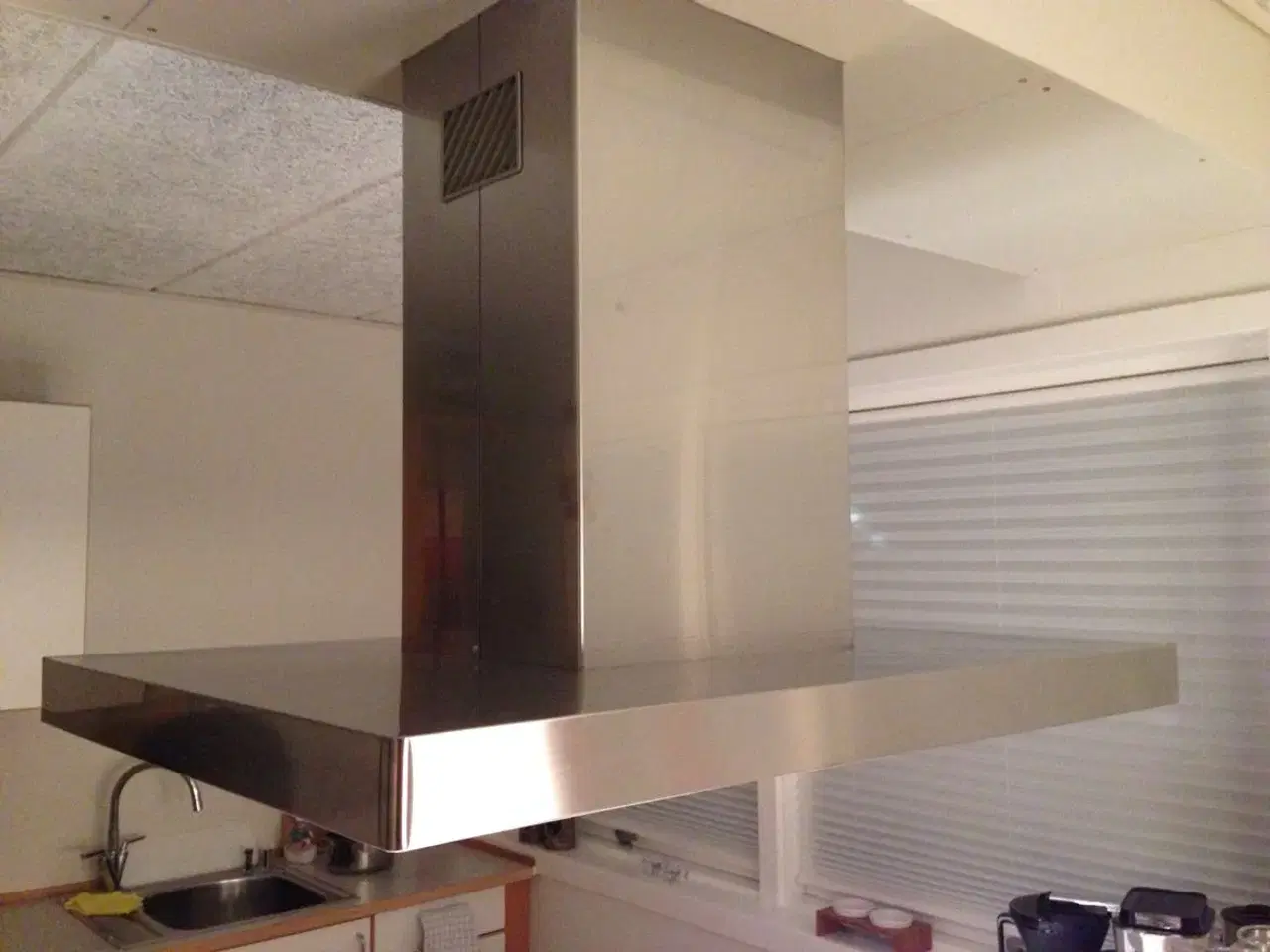 Futurum Exhausto frithængende rustfri emhætte til ekstern motor (dvs. uden motor). Med nyt firkantet nedhængsrør og stel for samme. Emfanget er lidt brugt.