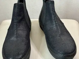 Superflotte langskaftede støvler i ruskind med kinahæl, der er lynlås i siden - ikke brugt Den indvendige længde er 25 cm, hælen er 8 cm høj, plateau er 1,5 cm, selve skaftet er 40 cm, skaftvidde øverst er 36 cm, lægvidde er 32 cm (18 cm ned fra øverst) Bud fra kr 600 plus porto Afhentning: København, Østerbro