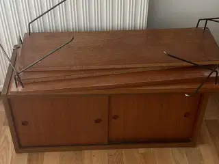 Flot og velholdt reolsystem i mahogni 2 sektioner: en sektion med dobbelt glasskab + en sektion med boghylder og barskab sektion med glassakb: 100 cem bred bred sektion med boghyler og barskab: 152 cm bred 44 cm dyb / 184 cm høj Afhentes 5690 Tommerup