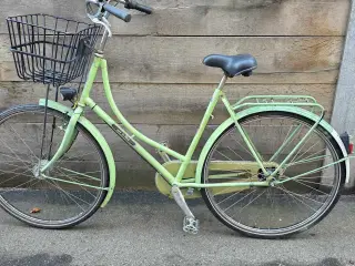 Sort Touring Stratos damecykel. Denne flotte klassisk minimalistisk retro-cykel, fremstår med rust og patina, men det ser rigtigt fint ud. Denne flotte klassisk minimalistisk Touringcykel, er super cool. Retrocyklen er størrelse 54 og sadlen kan sættes op eller ned, ny kæde, støtteben, bagagebærer, 5 indvendige gear, fodbremse til baghjulet og håndbremse på forhjulet, for- og bagskærm, stelnummer WBD068751T. Denne vintage dame cykel er perfekt til dig, som gerne vil skille sig dig i gadebilledet. Dette fine pedaldrevet køretøjer, køre ok. Så er du til grøn energi og bæredygtighed, er dette transportmiddel lige noget for dig. Hvis du også mener, at offentlig transport er for dyr, og hvis du nyder frisk luft på dine kinder og gratis motion, så er denne black bike / bicycle det perfekte valg for dig, og kan blive din for 1.500 kr.