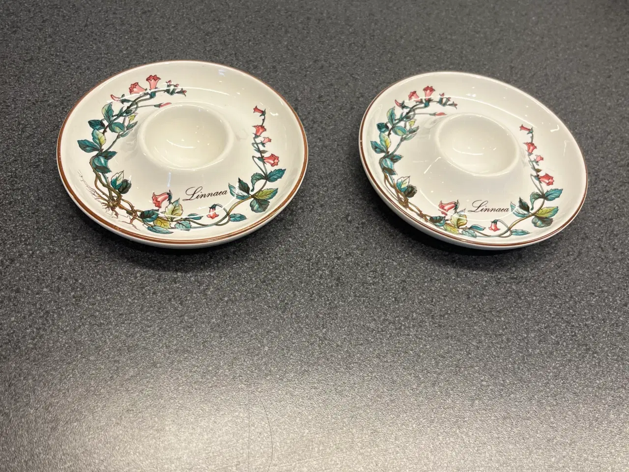 Super smukke, originale, retro æggebægere fra Villeroy og Boch - Linnaea Jeg har også 6 middagstallerkener fra Villeroy og Boch - Botanica serien.