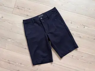 3 par mørkeblå golfshorts str. 52, (ca, 2x48) alle uden huller el.lign. 1 par fra Backtee lidt falmet foran på benene, pris 75kr 1 par fra Backtee som næsten nye, pris 125kr 1 par fra Arnold Palmer gode, men brugt, pris 100kr Samlet pris 250kr.