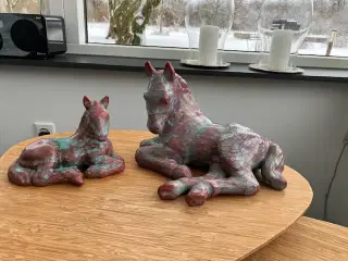Smuk og dekorativ hjortestatue i hård plast med sorte og guld detaljer. Står stabilt på sokkel og giver et elegant, naturinspireret udtryk i rummet. Har en lille revne over næsen, men intet af betydning. Perfekt som indretningsdetalje eller som et markant statement-piece i hjemmet. Planten bagved kan medfølge.