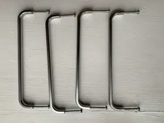 Vinkeljern fra 2 gamle vinduer. 8 metalvinkler i 2 forskellige mål. God gammeldags gods inkl. hvid maling og let rust. Brug dem til vinduerne, hvis du har brug for originale vinkeljern, med masser af original patina. ....eller brug dem til alle mulige andre rammer eller møbelprojekter, eller..... De 8 jern sælges samlet for 100 kr. + evt. porto. Kan afhentes på Østerbro.