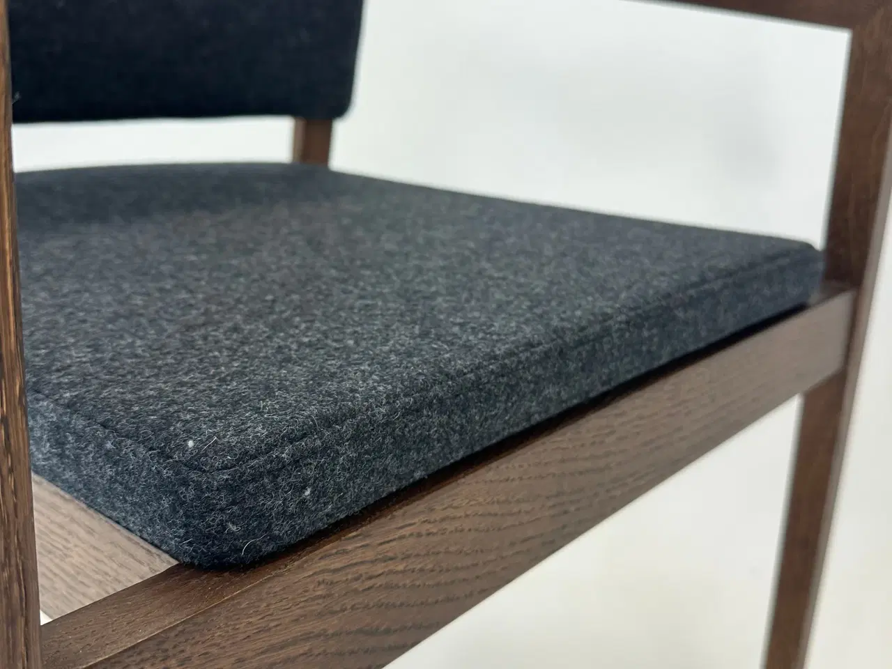 Magnus Olesen Session Relax – Elegant og Komfortabel LoungestolMagnus Olesen Session Relax er en raffineret loungestol, der kombinerer klassisk håndværk med moderne design. Med sin ergonomiske udformning og bløde polstring tilbyder denne stol en suveræn siddekomfort, hvilket gør den perfekt til loungemiljøer, venteområder og eksklusive møderum.Design og MaterialerSæde & ryg: Polstret med slidstærkt mørkegråt stof, der giver en sofistikeret og behagelig siddeoplevelse.Armlæn & stel: Fremstillet i massivt mørkolieret Eg, hvilket sikrer både holdbarhed og et elegant look.Ergonomisk design: Den let tilbagelænede ryg og polstrede sæde sikrer optimal støtte og afslapning.EgenskaberHøj siddekomfort: Perfekt til længere ophold i loungen eller mødelokalet.Eksklusivt skandinavisk design: En stilren og tidløs tilføjelse til enhver indretning.Holdbare materialer: Massivt træ og kvalitetsstof sikrer lang levetid.AnvendelsesmulighederLoungemiljøer: Ideel til receptioner, venteområder og hotel-lounges.Mødelokaler: Perfekt som en elegant gæstestol med høj komfort.Private hjem & kontorer: En luksuriøs stol til afslapning og stilfuld indretning.Med sin tidløse elegance, overlegne komfort og håndværksmæssige kvalitet er Session Relax det perfekte valg til ethvert moderne lounge- eller arbejdsområde.Denne stol er købt som en del af et restsalg og repræsenterer derfor en unik kombination af bæredygtighed og design. Du får en stol i høj kvalitet, samtidig med at du reducerer miljøpåvirkningen ved at støtte en cirkulær økonomi inden for møbelindustrien.