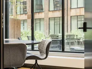 Privat aflåst kontor med hæve-sænke-borde, stole, locker rooms, wi-fi og adgang til alle services. Her kan du være 1 medarbejder. Lejemålets energimærke er angivet til: A2010