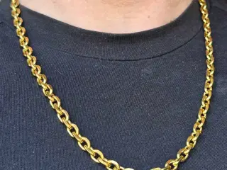 10mm ankerkæde, i 70cm. Lavet med unik lås, der er lavet ligesom et led - for at skjule den. PVD guldbelagt med 14kt guld. Super kvalitet til prisen. Kan sendes med dao, eller afhentes i Ringsted.