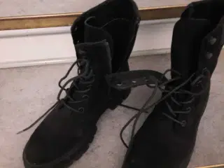 Støvle med snor forhen og lynlås på side, størrelse 39. Fin stand, næsten ny. mørke blå Ruskind med brun pynt med yderstof. Gummisål. kan hentes for 50 kr. sendes gerne privat.