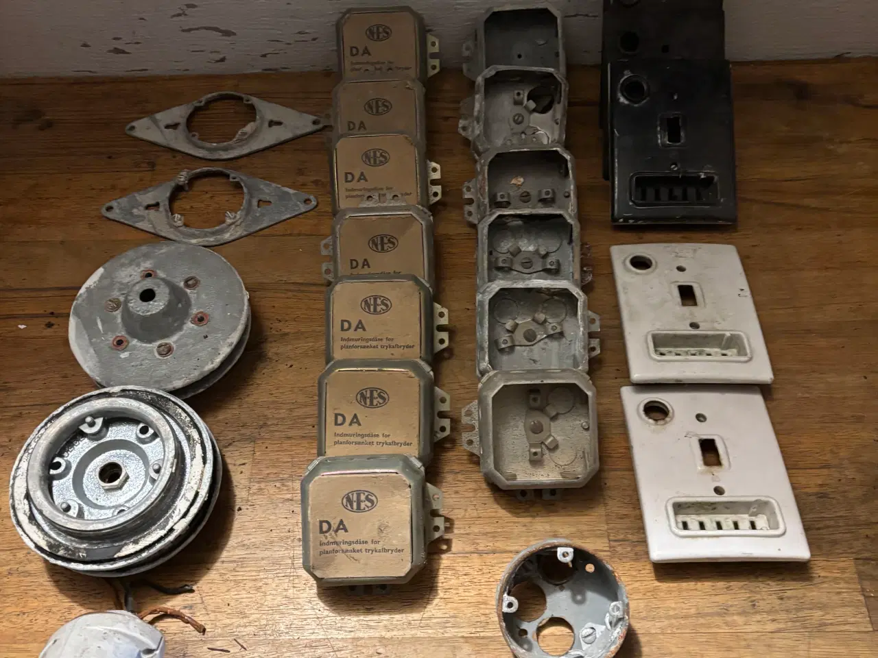 Gamle kontakter, afbrydere, dåser lanmpeudtag m.m.
