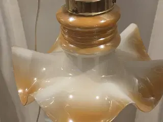 Dette er en dansk petroleumslampe, model Alma, designet af Michael Bang i 1976 for Holmegaard Glasværk. Lampen er kendetegnet ved sin mørkegrønne glasskærm og et stel af messing. Den blev fremstillet i perioden 1976–1981, både som klassisk petroleumslampe og som elektrisk version. Det er et ikonisk eksempel på dansk glaskunst og belysningsdesign fra 1970'erne. Glas har ingen fail, har ikke tjekket om den fungerer