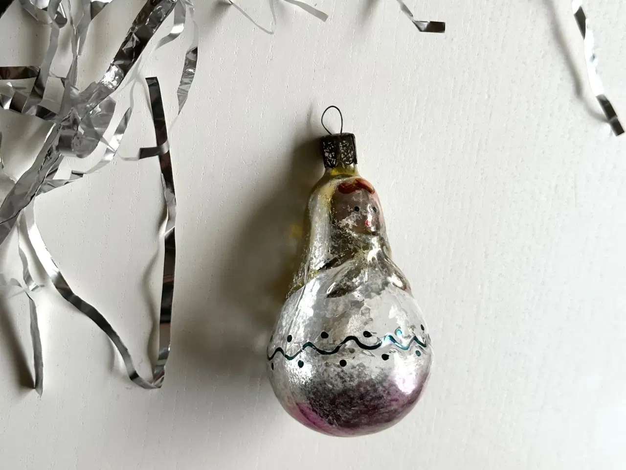 Vintage julekugle, gul/lilla babushka