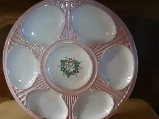 Kaffe/spisestel med guldkant. Ved ikke hvad det hedder men, det er gammelt. Der er 12 store tall, 11 dybe, 12 frokost tall. 5 underkopper, 5 dessert tall, 5 kopper. En sovseskål, 2 kartoffelskåle, et rundt fad samt 6 andre fade.
