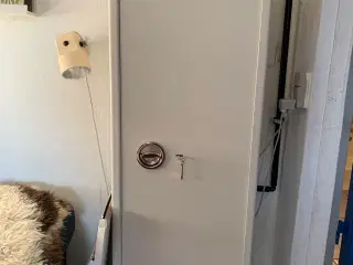 Fint våbenskab til 5 våben sælges H:145cm B:39cm dybde:30cm , kvittering haves Kan købes i og afhentes i Ebeltoft mod kontant eller mobilepay (patronbælte som nyt og bedste kvalitet sælges for højeste bud)