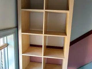Reol, der står op af væggen. Dybde er 40 cm. Den øverste hylde er 17 cm dyb og den nederste hylde er 35 cm dyb. Reolen er i god stand.