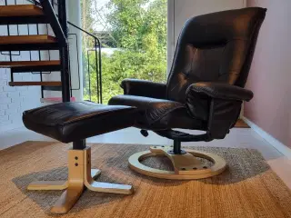 Rigtig fin otiumstol som kan foldes ud til liggestol med integreret fodskammel. Man vipper bare på håndtaget og så folder den ud. Står flot i træet. Kan bringes ud i Silkeborg og omegn.
