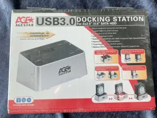 CalDigit Thunderbolt dockingstation med flere porte inklusive USB, Ethernet og lydudgang. Enheden har en robust metalfinish og er designet til at forbinde forskellige eksterne enheder til en computer via Thunderbolt-forbindelse.